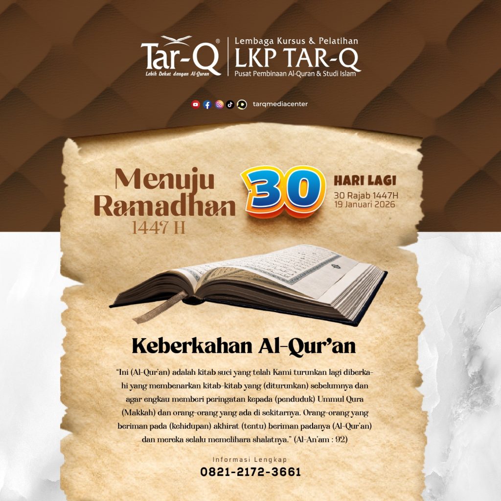Selamat datang di website kami Lembaga Kursus Tar-Q, Pertama Terakreditasi Badan Akreditasi Nasional Pendidikan Non Formal Tempat Anda dan Keluarga Belajar al-Quran, mulai dari membaca, menghafal dan memahaminya hingga al-Quran menjadi mindset kehidupan sebagai muslim, pokoknya MANTABe.. Mudah Andal Terjangkau dan Berkah..